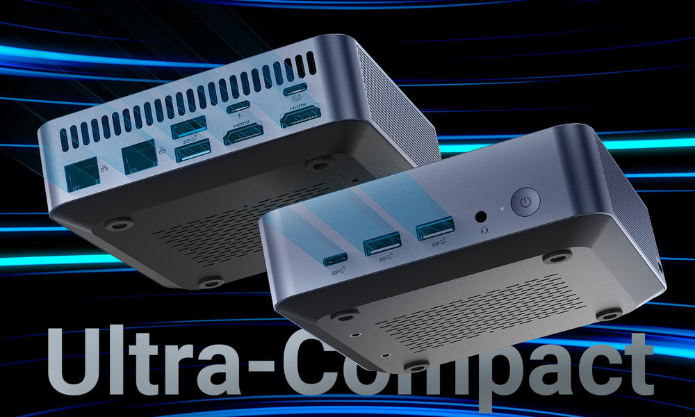 Space-saving micro-sized design with Thunderbolt 4, USB-A, USB-C, and dual RJ45 Ethernet ports, ensuring maximum connectivity and flexibility.